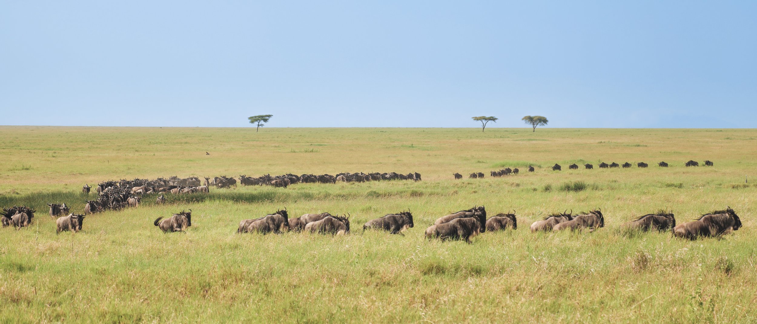 We spend about twelve days in the Serengeti. We go north and see wildebeest gathering, thousands of them moving as part of the great migration, crossing the Mara River on their way into Kenya. It’s one of the most important ecological systems on Earth, and to see it with your own eyes feels like watching the planet breathe.